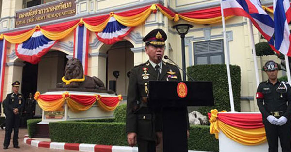 ทบ. จัดพิธีส่งมอบตำแหน่ง ผบ.ทบ. คนใหม่ ด้าน ธีรชัย นาควานิช ลั่น กองทัพบกต้องเข้มแข็ง พร้อมสนองนโยบายรัฐบาล และ คสช. ยันทหารไม่ขัดแย้งกับกลุ่มใด เผยเตรียมลุย 3 จังหวัดชายแดนใต้สัปดาห์หน้า