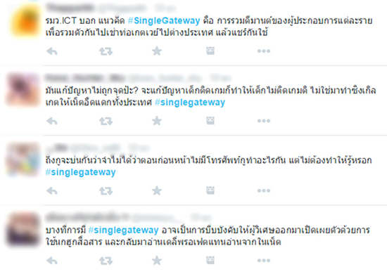 หลังจากที่มีกระแสต่อต้านอย่างหนักจากนักท่องอินเทอร์เน็ตและนักวิชาการหลายฝ่าย ทั้งยังมีการร่วมลงชื่อเพื่อแสดงพลังคัดค้านนโยบาย "ซิงเกิล เกตเวย์" (Single Gateway) ซึ่งเป็นเหมือนการจำกัดประตูการเชื่อมโยงเครือข่ายอินเทอร์เน็ตในประเทศให้เหลือเพียงบานเดียว แต่ก็ดูเหมือนว่าเสียงค้านของชาวเน็ตจะไม่ได้ส่งผลกระทบอะไรต่อรัฐบาลนัก เมื่อได้มีการแชร์ภาพเอกสารที่นายกรัฐมนตรีมีข้อสั่งการให้ร่งรัดจัดตั้ง ซิงเกิล เกตเวย์ เพื่อควบคุมเว็บไซต์ไม่เหมาะสมจากต่างประเทศ เนื่องจากปัจจุบันเยาวชนมีพฤติกรรมการใช้อินเทอร์เน็ตไม่เหมาะสม เช่น การติดเกมออนไลน์ [อ่าน เปิดเอกสารรัฐบาล เร่งตั้ง ซิงเกิลเกตเวย์ ป้องกันเด็กติดเกม !?]