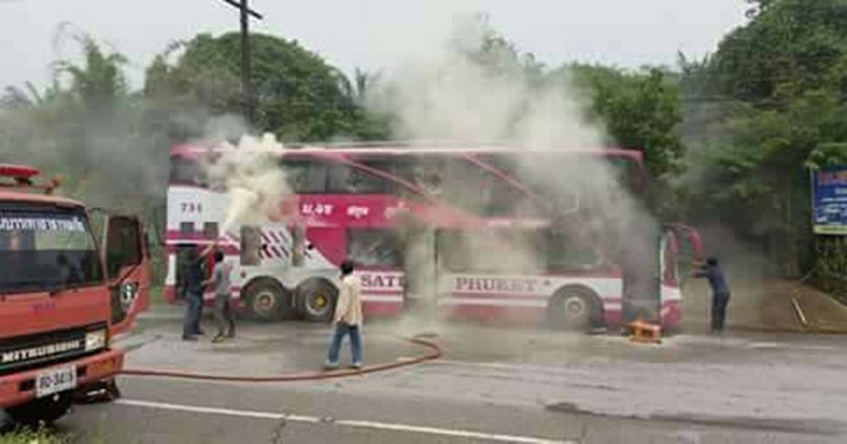 ระทึก ! เกิดเหตุไฟไหม้รถโดยสารประจำทางสตูล-ภูเก็ต ที่หน้า สภ.ตะกั่วทุ่ง จ.พังงา ส่งผลให้มีผู้เสียชีวิต 1 ราย และบาดเจ็บอีก 13 ราย