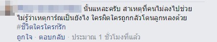 ด้านชาวเน็ตที่ได้ชมคลิปดังกล่าวตั้งคำถามว่า ทำไมคนที่ขับรถผ่านไปมา ไม่มีการลงมาช่วยเลย ทำไมถึงไร้น้ำใจกันแบบนี้ บ้างก็แสดงความคิดเห็นต่อกรณีนี้ว่า ไม่รู้ว่าเหตุการณ์เป็นมาอย่างไร ใครผิดใครถูก ที่ไม่มีใครกล้ายุ่ง เพราะอาจกลัวถูกลูกหลงก็ได้