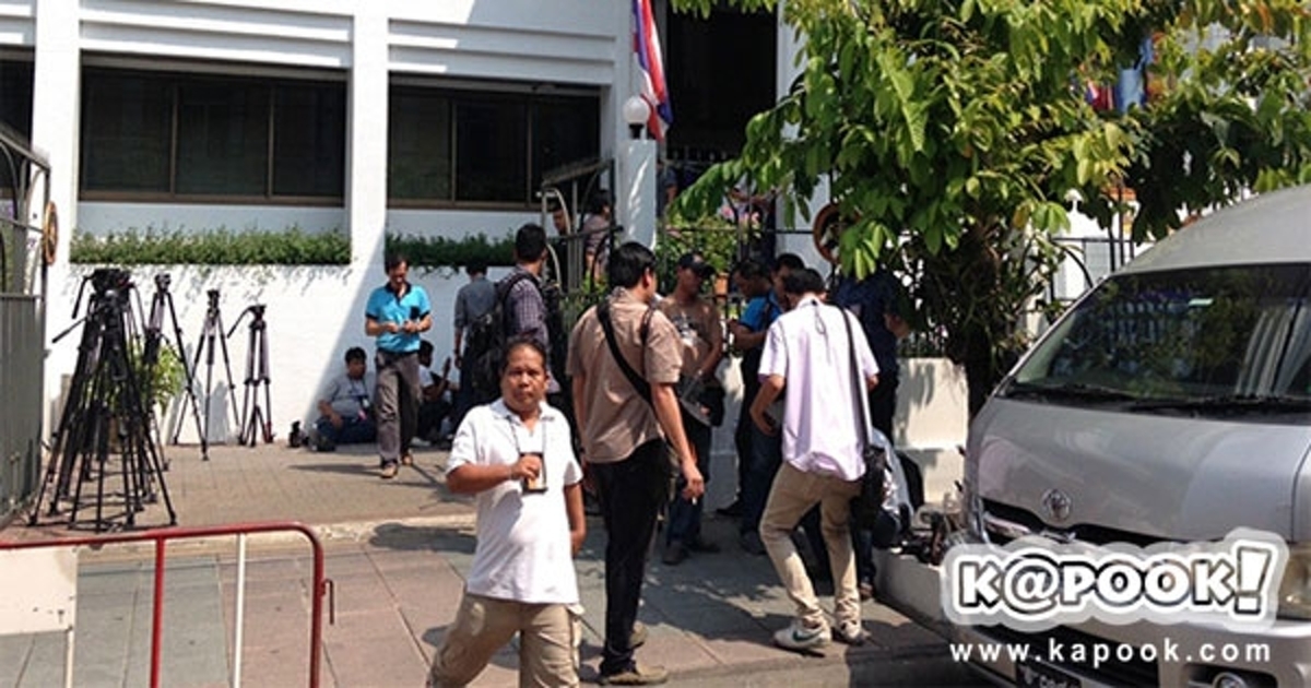 จากนั้นเวลาประมาณ 11.15 น. พนักงานสอบสวนศาลทหาร ได้ออกมาขึ้นรถโตโยต้า ทะเบียน สธ 7744 ที่จอดรอไว้ด้านหน้ากรมพระธรรมนูญ พร้อมกับสื่อมวลชนที่วิ่งกรูเข้าไปถาม แต่พนักงานสอบสวนปฏิเสธที่จะให้ข้อมูลรายละเอียดว่ามีพลเรือนเป็นผู้ต้องหาหรือไม่ บอกเพียงแต่ว่า ให้รอดูตอนนำตัวมาฝากขัง