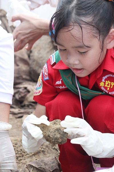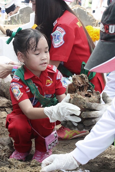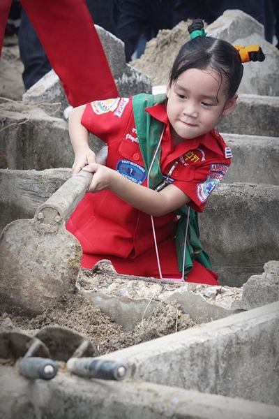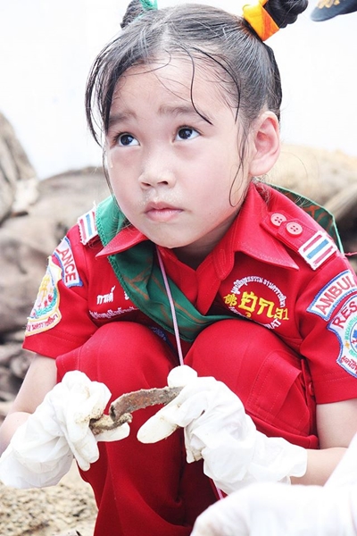 โดยเผยให้เห็นภาพของหนูน้อยอาสาสมัครตัวจิ๋ว กำลังช่วยงานทั้งขุดหลุม ช่วยเก็บกระดูกผู้เสียชีวิตจนเหงื่อไหลเต็มหน้า แต่ไม่มีบ่น แถมยังยิ้มสู้แบบสบาย ๆ เรียกได้ว่าช่วยทำเพราะใจรัก ไม่หวั่นเลยสักนิดเดียว