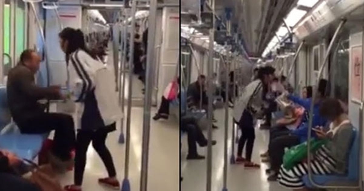 วันที่ 3 พฤศจิกายน 2558 เฟซบุ๊กของเว็บไซต์เซี่ยงไฮ้อิสต์ เปิดเผยคลิปวิดีโอชวนแหวะ เมื่อหญิงสาวชาวจีนในชุดวอร์มสีขาว เดินเอามือล้วงกระเป๋าไปในขบวนรถไฟฟ้าโบกี้ต่าง ๆ ก่อนจะถ่มน้ำลายใส่บรรดาผู้โดยสารที่กำลังนั่งอยู่ในขบวน จนผู้โดยสารตกอกตกใจกันยกใหญ่