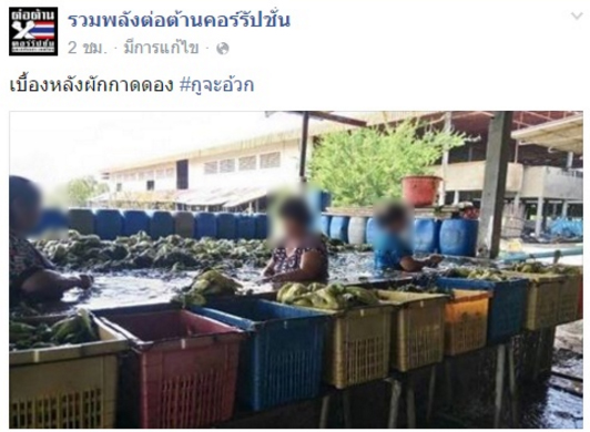กลายมาเป็นภาพที่เรียกเสียงฮือฮาในโซเชียลเป็นอย่างมาก หลังจากในวันนี้ (8 พฤศจิกายน 2558) ทางเพจ รวมพลังต่อต้านคอร์รัปชั่น ได้มีการโพสต์ภาพผู้หญิง 3 คนที่ลงไปแช่อยู่ในอ่างน้ำ กำลังล้างผักที่ลอยอยู่เต็มด้านหนึ่งของอ่าง โดยอ้างว่านี่เป็นภาพเบื้องหลังผักกาดดอง