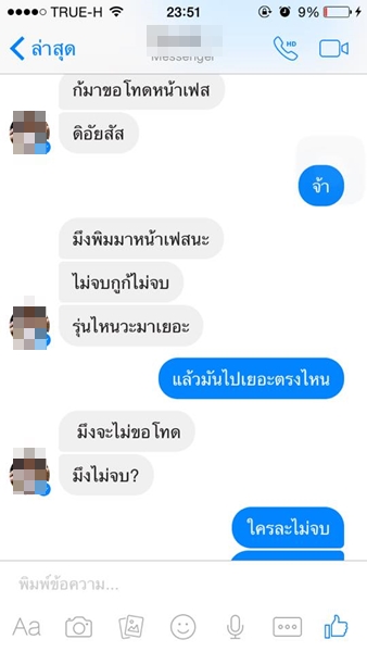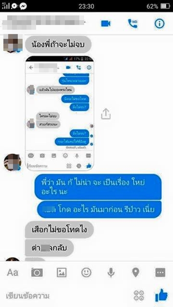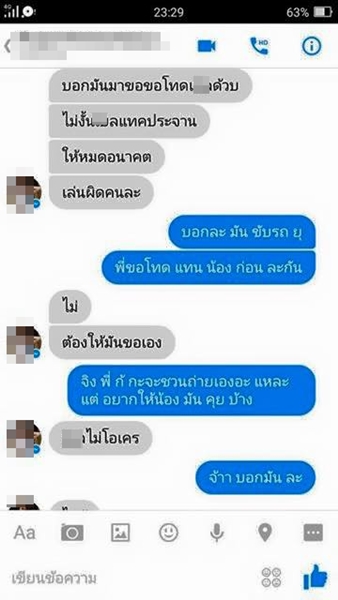 เท่านั้นยังไม่พอ เมื่อพี่ช่างภาพซึ่งเป็นคนฝากชวน ติดต่อเข้าไปคุยเพื่อช่วยเคลียร์ นางแบบสาวก็ดูจะยังไม่ลดดีกรีความเดือดลง ตอบกลับด้วยภาษาที่ยังคงความหยาบคายไม่น้อย ทั้งที่อีกฝ่ายใช้คำสุภาพและคุยแบบซอฟต์ ๆ แถมฝากให้ไปบอกช่างภาพรายดังกล่าวว่าให้มาขอโทษด้วย ไม่งั้นเธอจะแท็กประจานให้เสียอนาคตเลยทีเดียว