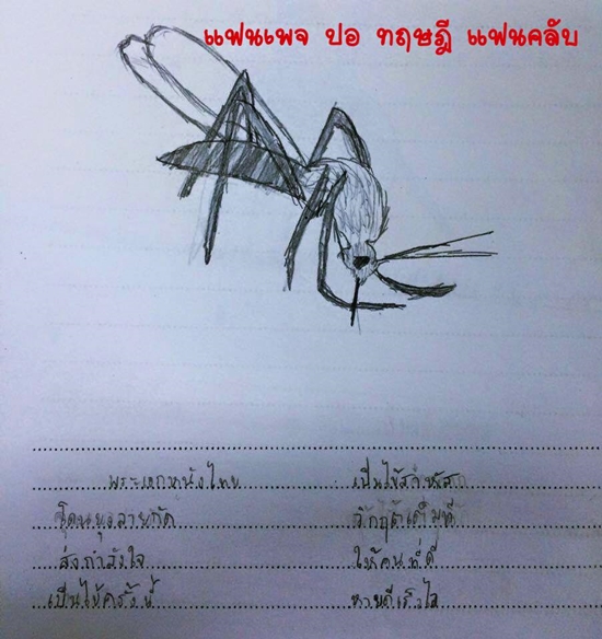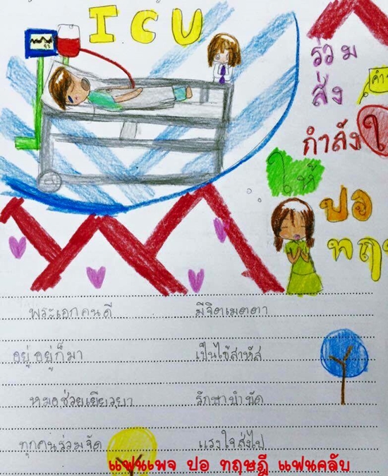 โดยเหล่าแฟนคลับตัวจิ๋ว น้อง ๆ ชั้น ป.4 จากโรงเรียนสาธิตละอออุทิศ กรุงเทพฯ ก็ได้วาดภาพและแต่งกลอนมอบเป็นกำลังใจให้กับพระเอกหนุ่มด้วย ลองอ่านกลอนดูนะคะ ถึงบางบทไม่เพราะหรือไม่คล้องกันเท่าไร แต่ก็ให้กำลังใจครอบครัวของหนุ่มปอและหนุ่มปอได้เป็นอย่างดีเลยล่ะค่ะ