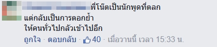 อย่างไรก็ดี นอกจากชาวยะลาจะไม่ขำกับโชว์ของโน้ส อุดม เกี่ยวกับเรื่องนี้แล้ว บรรดาชาวเน็ตยังออกโรงเตือนว่า เรื่องนี้เป็นเรื่องละเอียดอ่อน ไม่น่าเอามาพูดแบบขำ ๆ ทำไมต้องเอาความเดือดร้อนของคนอื่นมาล้อเล่นด้วย น่าจะคิดถึงวงกว้างบ้างว่าอาจส่งผลกระทบ