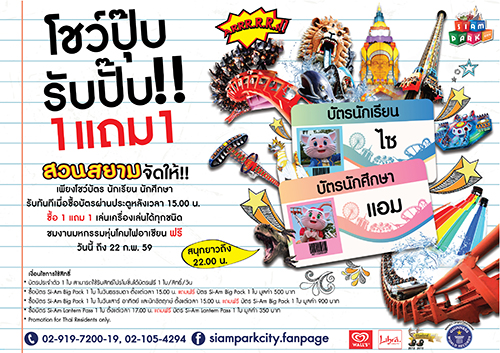สวนสยามจัดให้!! นักเรียนนักศึกษาแสดงบัตร ซื้อ 1 แถม 1 หลังบ่าย3