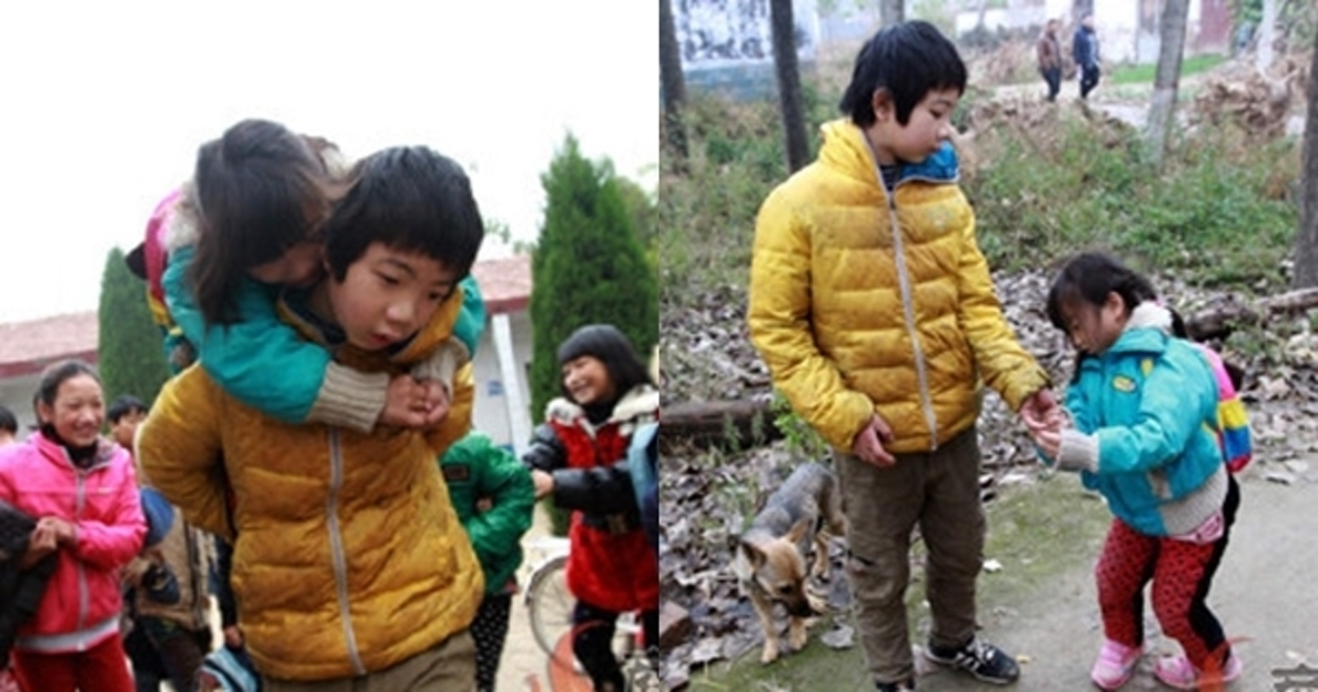 วันที่ 1 ธันวาคม 2558 เฟซบุ๊กสำนักข่าวพีเพิลเดลี่ของจีน เผยเรื่องราวชวนอบอุ่นหัวใจของเด็กชายชาวจีนวัย 11 ขวบคนนี้ เขาอาศัยอยู่ในภาคกลางของประเทศ มีน้องสาวตัวเล็ก ๆ หนึ่งคน แต่เธอดันโชคร้ายมาป่วยเป็นโรคสมองพิการตั้งแต่อายุได้เพียง 1 ขวบ การรักษาของเธอทำให้ครอบครัวต้องเป็นหนี้ก้อนโต พ่อและแม่ของพวกเขาต้องเข้าไปหางานทำในเมืองใหญ่ ทั้งคู่จึงต้องอยู่ในการดูแลของตาและยายแทน
