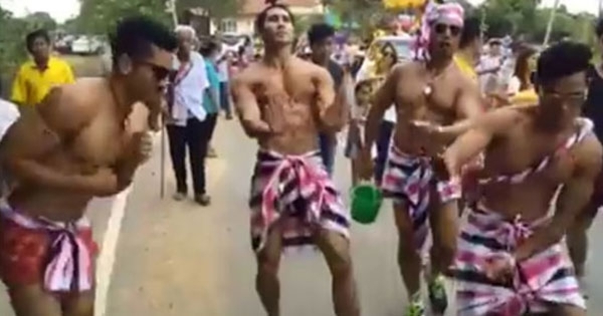 คลิปแซ่บ ! หนุ่มกล้ามล่ำนุ่งผ้าขาวม้า แดนซ์ยับหน้างานบวช สาวน้อยสาวใหญ่ กรี๊ดกร๊าดตรึม แต่งานนี้คอมเม้นท์เพียบ บ้างบอกไม่เหมาะสม สวมชุดไม่เรียบร้อยในเขตวัด