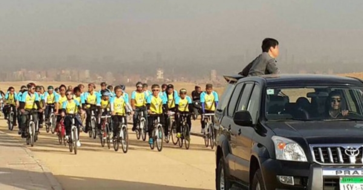 นักศึกษาชาวไทยมุสลิมกว่า 30 คน ซ้อมปั่นจักรยาน Bike For Dad บริเวณใกล้กับพีระมิดเมืองกิซา ประกาศความเป็นไทยให้โลกรู้