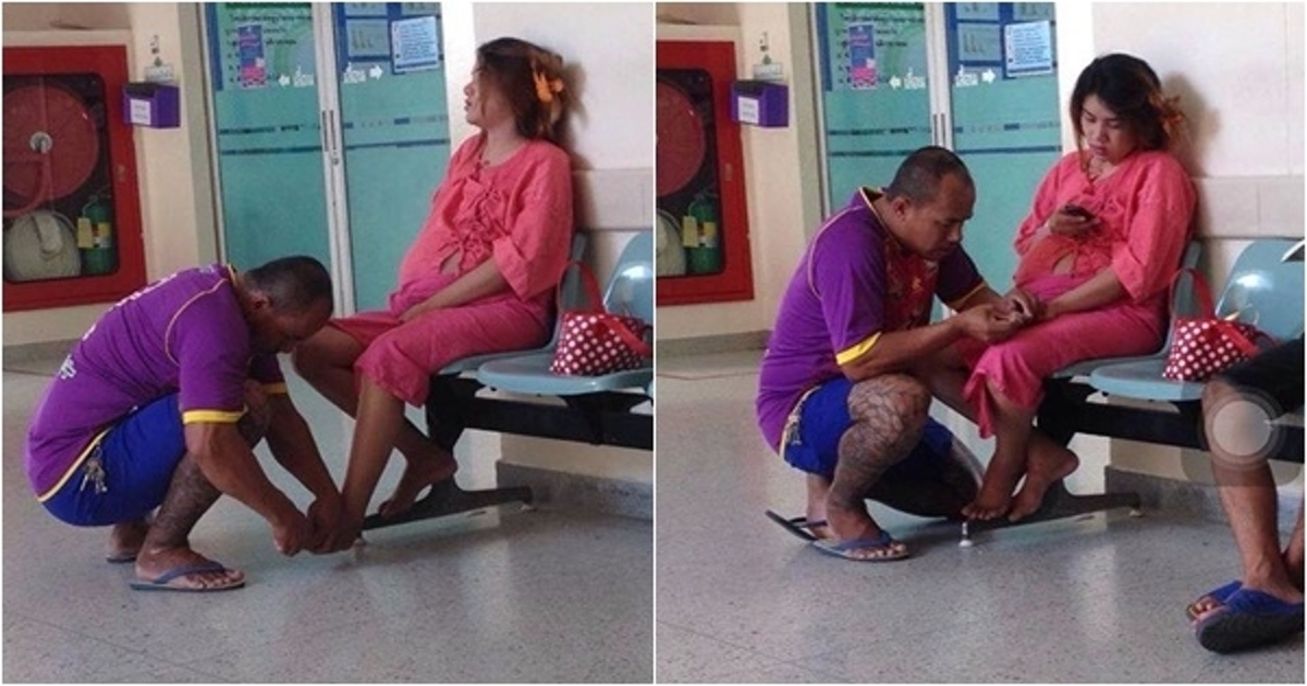 แต่ล่าสุด (13 ธันวาคม 2558) ในโลกออนไลน์ ได้ปรากฏภาพของชายคนหนึ่ง ที่นอกจากเขาจะรักภรรยาทั้งหัวใจแล้ว เขายังได้แสดงความรักออกมาได้อย่างน่ารัก โดยที่ชายที่มีรอยสักทั้งตัวและโกนหัวคนนี้ ได้คุกเข่าตัดเล็บมือเล็บเท้าให้กับภรรยาที่กำลังตั้งท้อง โดยไม่แสดงท่าทีรังเกียจแต่อย่างใด ในขณะที่ภรรยากำลังนั่งรอคิวเพื่อตรวจครรภ์ อันก่อเกิดเป็นภาพเล็ก ๆ ที่น่าประทับใจ จนใครมาเห็นก็ต้องอมยิ้ม