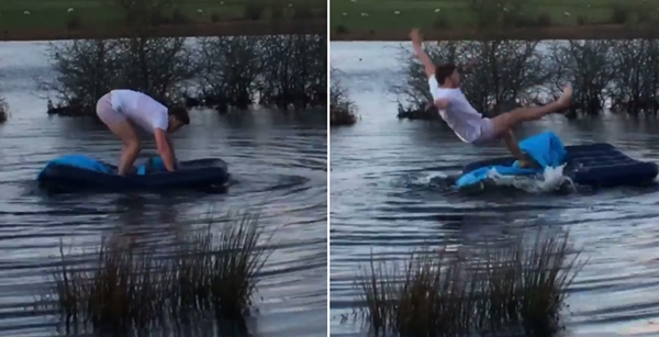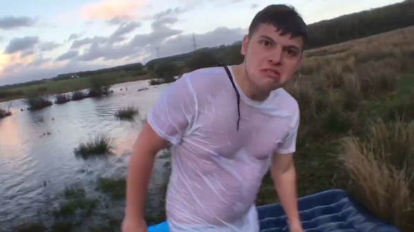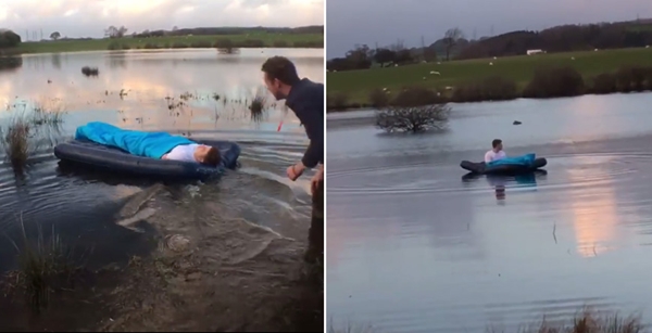 หนุ่มอังกฤษเจ้าของรายการคลิปแกล้งคนชื่อดัง เบน ฟิลลิปส์ ร่วมมือกับเพื่อนนาม คริส ช่วยกันลาก เอเลียต เพื่อนผู้ดวงซวยสุดขีด ที่กำลังหลับลึกแบบสนิทสุด ๆ บนเตียงลม ลงไปลอยตุ๊บป่องกลางทะเลสาบในช่วงหน้าหนาวที่แสนเย็นยะเยือก บังเกิดเป็นคลิปแกล้งเพื่อนสุดฮาจนเว็บไซต์มิเรอร์ หยิบมานำเสนอเมื่อวันที่ 21 ธันวาคม 2558