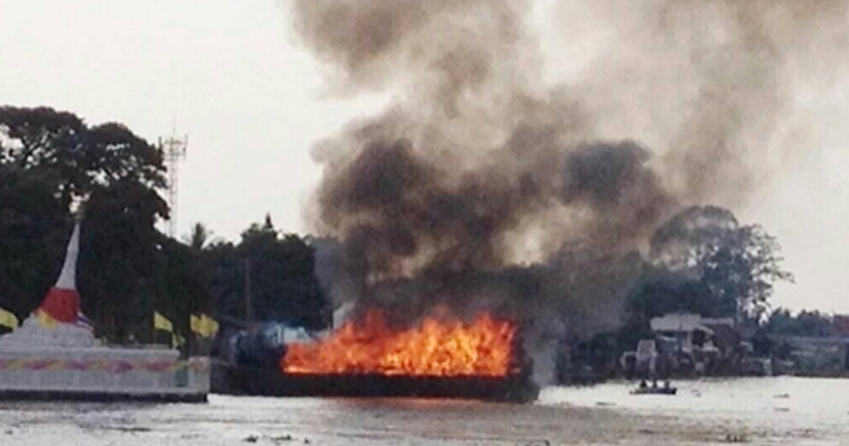 เกิดเหตุไฟไหม้เรือท่องเที่ยวเกาะเกร็ด จ.นนทบุรี เสียหายแล้วทั้งลำ สาเหตุจากแก๊สระเบิด เบื้องต้นไม่พบผู้บาดเจ็บ-เสียชีวิต