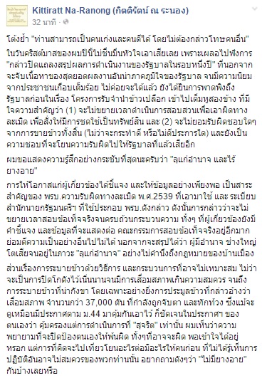 โดยข้อความในเฟซบุ๊กของนายกิตติรัตน์ Kittiratt Na-Ranong (กิตติรัตน์ ณ ระนอง) มีรายละเอียดดังนี้