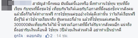 ทางด้านคุณหมอจบใหม่รายดังกล่าวก็ได้โพสต์ข้อความเพิ่มเติมว่า คนเรียนหมอถึงแม้จะใช้ภาษีประชาชน เมื่อเรียนจบก็ต้องมีสัญญาทาสชดใช้ทุนไปอีก 3 ปี และหากไม่ทำงานชดใช้ทุน ก็ต้องจ่ายเงินแทน ไม่มีอะไรได้มาฟรี ๆ ทั้งนั้น