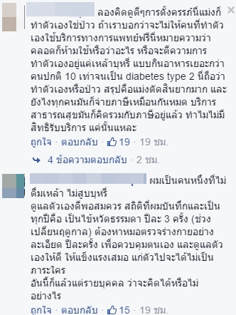 อย่างไรก็ดี เพจดังอย่าง Drama-addict ก็ได้ออกมาแสดงความคิดเห็นต่อกรณีดังกล่าวว่า สมัยหนุ่ม ๆ ตนก็เคยมีความคิดแบบนี้เช่นกัน กรณีที่คนไข้เป็นโรคที่มาจากพฤติกรรมของตัวเอง ห้ามเท่าไรก็ไม่ฟังจนโรคร้ายแรงขึ้นเรื่อย ๆ ทำให้ค่าใช้จ่ายแพงขึ้น ซึ่งทำไมต้องเอาเงินภาษีประชาชน (งบประกันสุขภาพถ้วนหน้า) มาจ่ายค่ารักษาให้ด้วย ในเมื่อเราเตือนเขาแล้วแต่คนไข้ไม่ฟังเอง แต่เมื่อตนเริ่มแก่ตัว ก็เริ่มคิดได้ว่าโรคดังกล่าวเกิดได้จากสาเหตุมากมาย แล้วเราจะเอาอะไรไปตัดสินเขา เช่นตัดสินได้อย่างไรว่าเป็นตับแข็งเพราะกินเหล้า หรือคนที่เป็นเบาหวาน-ความดัน ที่มาจากพันธุกรรม เราจะเอาอะไรไปตัดสินว่าเขาไม่ควรได้รับการรักษา หากเขาทวงสิทธิ์ว่าเขาเองก็จ่ายภาษีเหมือนกัน