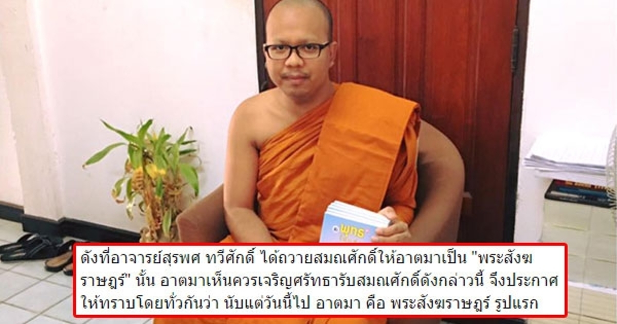 พระมหาไพรวัลย์ ประกาศรับเป็นพระสังฆราษฎร์ รูปแรกของไทย ด้านสุรพศ ทวีศักดิ์ โพสต์อธิบายความหมาย เป็นพระของราษฎร