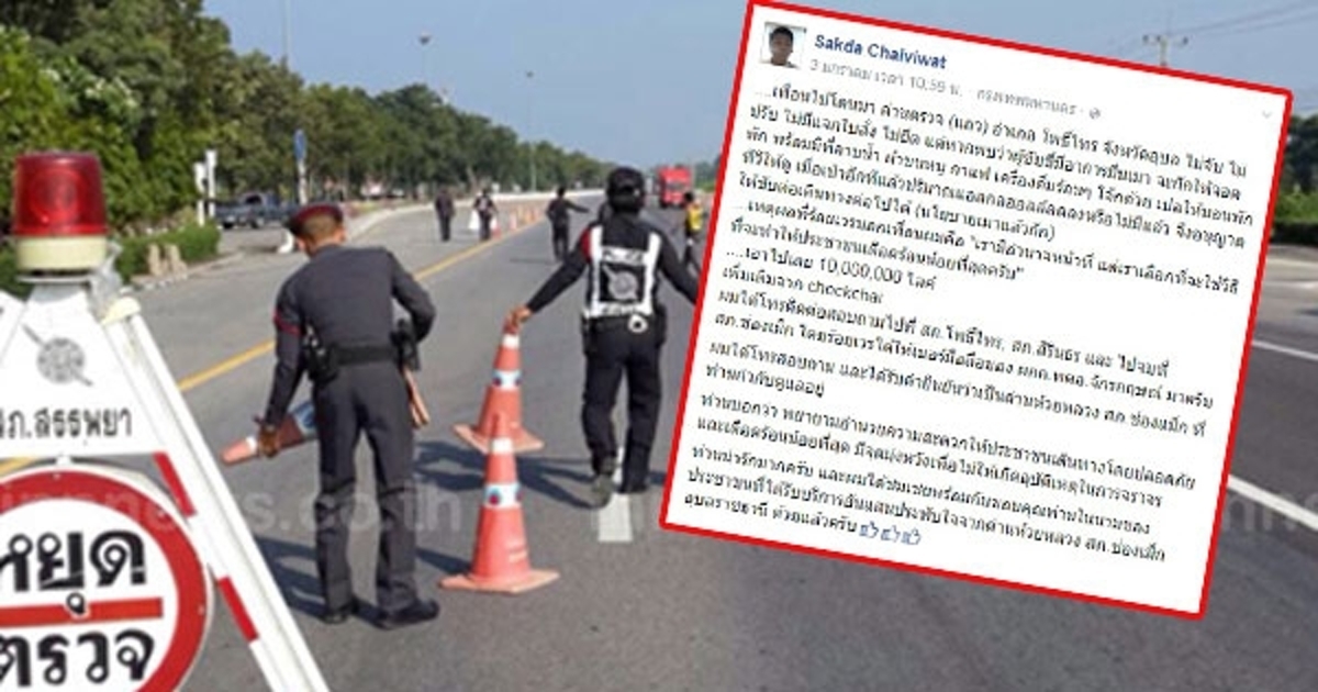 วันที่ 5 มกราคม 2559 ผู้สื่อข่าวรายงานว่า สังคมออนไลน์กำลังแห่ชื่นชมเรื่องราวดี ๆ ของเจ้าหน้าที่ตำรวจที่ทำเพื่อประชาชนอย่างแท้จริง ซึ่งแชร์มาจากผู้ใช้เฟซบุ๊ก Sakda Chaiviwat ที่โพสต์ข้อความระบุว่า เพื่อนของตนเองไปเจอด่านตรวจของเจ้าหน้าที่ตำรวจใน อ.โพธิ์ไทร จ.อุบลราชธานี ไม่มีการจับหรือปรับ ผู้ขับขี่ที่มีอาการมึนเมา แต่จะกักตัวให้จอดพัก พร้อมมีที่อาบน้ำ ผ้าขนหนู เครื่องดื่มร้อน ๆ โจ๊ก ให้ผู้ขับขี่นอนพักจนกว่าปริมาณแอลกอฮอล์จะลดลงหรือไม่เมาแล้วจึงปล่อยตัวให้ขับรถเดินทางต่อได้