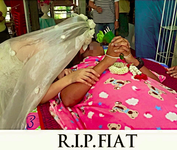 เรื่องราวที่จะนำเสนอดังต่อไปนี้ ไม่ใช่เรื่องแปลกใหม่ในสังคม แต่หากมีเหตุการณ์นี้เกิดขึ้นเมื่อใด ก็นำพาความเศร้าสลดใจมาสู่ผู้ที่พบเห็นได้ทุกเมื่อ โดยเมื่อวันที่ 4 มกราคม 2559 ผู้ใช้เฟซบุ๊กชื่อ Nan Thippharat ได้โพสต์ภาพของตนเองสวมชุดเจ้าสาวสีขาว ร่วมงานศพของเจ้าบ่าว ขณะที่เพื่อน ๆ และญาติต่างยืนเรียงแถวเข้าพิธีรดน้ำศพ โดยเจ้าของเฟซบุ๊กรายดังกล่าวระบุข้อความว่า "ฝันถึงงานแต่งงานของเรา ฝันว่าเราจับมือด้วยกัน หลับให้สบายนะที่รัก เค้ารักเฟี๊ยตนะ ความฝันของเราสองคนเป็นจริงแล้วนะ" ซึ่งนำพาความเศร้ามาสู่หัวใจของหลาย ๆ คนที่ได้พบเห็นภาพดังกล่าว