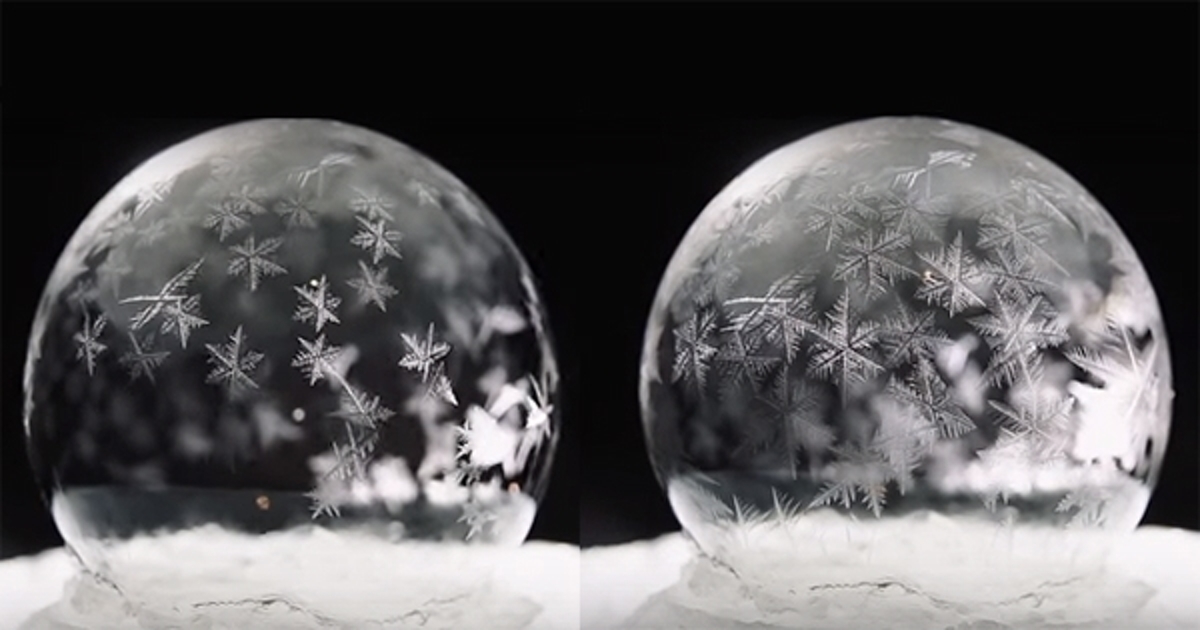 จากนั้นเขาก็เลยลงมือถ่ายคลิปวิดีโอฟองสบู่ที่อยู่ท่ามกลางอุณหภูมิอากาศ -15 องศาเซลเซียส ผลปรากฏออกมาตามคลิปที่เห็น ฟองสบู่ค่อย ๆ เปลี่ยนเป็นเกล็ดน้ำแข็งแฉก ๆ สวยงาม ช่างเป็นภาพที่แปลกตาผู้คนที่อยู่เมืองร้อนอย่างเรา ๆ ไม่น้อย