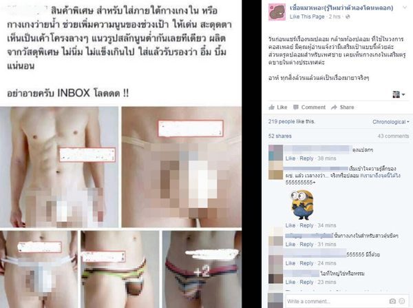 โดยเมื่อวันที่ 17 มกราคม 2559 เพจ เชื่อแมวเหอะ (รู้ไหมว่าตัวเองโดนหลอก) โพสต์ภาพพร้อมระบุข้อความว่า "วันก่อนแชร์เรื่องนมปลอม กล้ามท้องปลอม ที่ใช้ในวงการคอสเพลย์ มีคุณผู้อ่านแจ้งว่ามีเสริมเป้าแบบนี้ด้วยล่ะ ส่วนตรูดปลอมสำหรับเพศชาย เคยเห็นกางเกงในเสริมตรูดขายในต่างประเทศค่ะ อาห์ ทุกสิ่งล้วนแล้วแต่เป็นเรื่องมายาจริง ๆ"