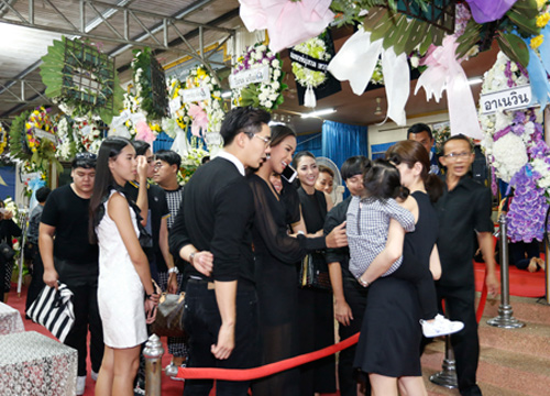 นอกจากนี้ก็มีดารานักแสดงแต้ว ณัฐพร, เมญ่า นนทวรรณ, เป๊ก เปรมมณัช, เกมส์ ศานติ, วุฒิ สุรินทร พร้อมดารานักแสดงจากละครสาวน้อยร้อยล้าน ได้ทางเข้าร่วมเคารพศพและอาลัยปอ ทฤษฎี พร้อมให้กำลังใจครอบครัวสหวงษ์ และรอร่วมงานสวดพระอภิธรรมศพในค่ำนี้เวลา 19.00 น. ก่อนได้ให้สัมภาษณ์กับสื่อมวลชน