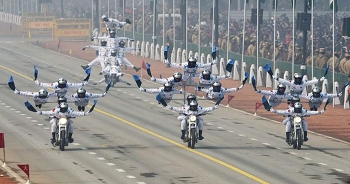 อินเดียจัดพาเหรดฉลองวันชาติปีที่ 67 สุดอลังการ โชว์ท่ายากต่อตัวบนมอเตอร์ไซค์ หนึ่งคันแบกได้เกือบสิบคน ยืนนิ่งไม่เซไม่ล้ม สวยงามมากเมื่อวันที่ 26 มกราคม 2559 สำนักข่าวเอเอฟพีรายงานว่า อินเดียได้จัดงานเฉลิมฉลองใหญ่เนื่องในวาระวันชาติปีที่ 67 ที่ถนนราชภัฏ ถนนเส้นสำคัญ ณ กรุงนิวเดลี โดยมีการจัดขบวนพาเหรดสวนสนามแสดงแสนยานุภาพของกองทัพ รวมทั้งขบวนร่ายรำ และโชว์ที่ถือว่าเป็นไฮไลท์เด็ดน่าตื่นตาตื่นใจของงาน อย่างการแสดงต่อตัวบนรถจักรยานยนต์ของเจ้าหน้าที่ทหารทีมแดร์เดวิล ทั้งสวยงาม ตื่นตาตื่นใจ และน่าหวาดเสียวไปพร้อม ๆ กัน