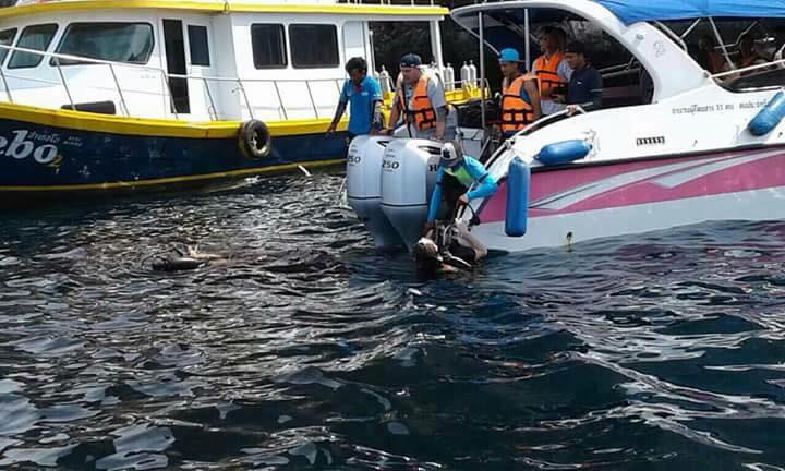 ในที่เกิดเหตุพบผู้บาดเจ็บทั้ง 2 ราย เป็นชาวรัสเซีย คือนายดีม่า ครูสอนดำน้ำ ถูกใบพัดเรือฟันที่ขาขวาเป็นแผลฉกรรจ์ และนักเรียนที่เรียนดำน้ำอีก 1 คน ถูกใบพัดฟันขาขวาขาดอาการสาหัส เจ้าหน้าที่จึงนำตัวส่งโรงพยาบาลเกาะพีพี ก่อนถูกส่งตัวต่อไปยังโรงพยาบาลกระบี่
