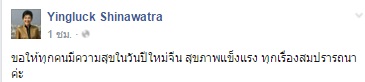 โดยข้อความในเฟซบุ๊กของ น.ส.ยิ่งลักษณ์ Yingluck Shinawatra มีรายละเอียดดังนี้