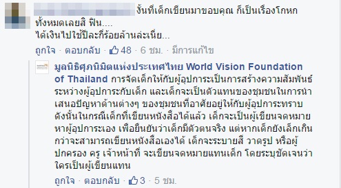 มูลนิธิศุภนิมิตฯ แจงดราม่าเงินบริจาค ไม่ได้ส่งถึงเด็กโดยตรง แต่นำเงินไปจัดสรรในพื้นที่ทำงานให้เกิดประโยชน์ ส่วนจดหมายที่เด็กส่งให้ผู้อุปการะ ไม่ใช่เรื่องโกหก จากกรณีก่อนหน้านี้ที่สังคมตั้งคำถามว่า โครงการอุปการะของ มูลนิธิศุภนิมิตแห่งประเทศไทย (World Vision Foundation of Thailand) นั้น ได้ส่งเงินบริจาคไปให้เด็กที่ได้รับอุปการะจริงหรือไม่นั้น ล่าสุด (18 กุมภาพันธ์ 2559) ทาง