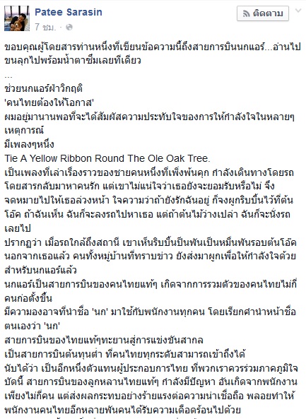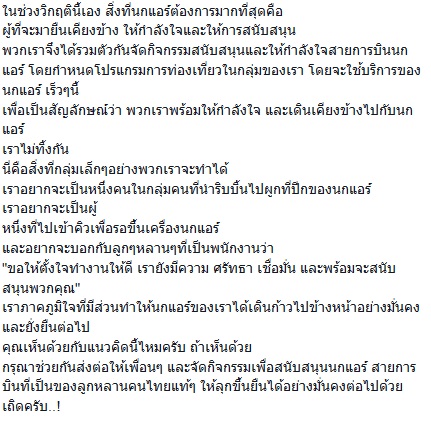 พาที ซึ้งน้ำตาคลอ..เปิดจดหมายจากผู้โดยสาร พร้อมลงภาพ "เราคือทีม" หลังนกแอร์เจอวิกฤต บอกนี่คือกำลังใจชั้นเยี่ยม