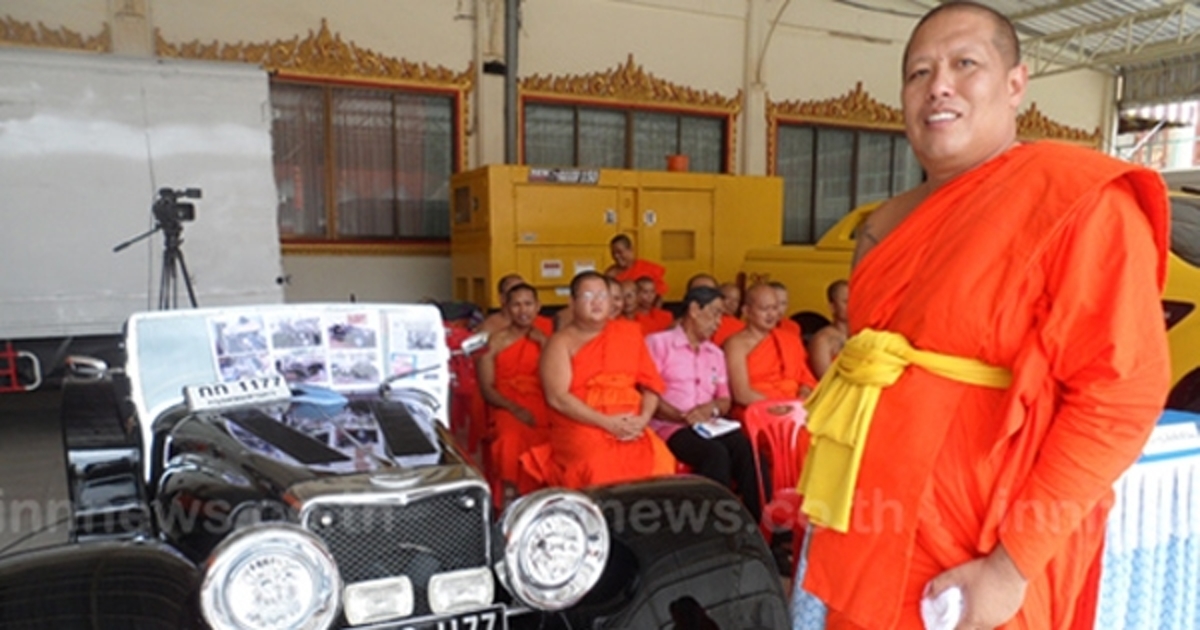 ดีเอสไอ เข้าตรวจสอบรถหรูโบราณของ หลวงพี่น้ำฝน ที่วัดไผ่ล้อม หลังพบจดทะเบียนเป็นรถจากัวร์ แพนเธอร์