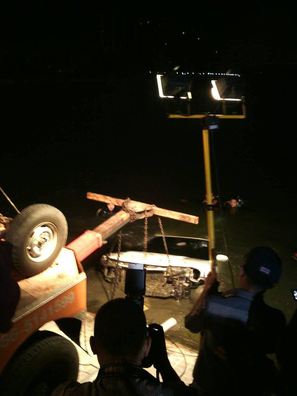 วันที่ 2 มีนาคม 2559 เมื่อเวลา 03.30 น. เจ้าหน้าที่ตำรวจ สภ.ปากเกร็ด จ.นนทบุรี รับแจ้งเหตุมีรถเก๋งตกลงไปในทะเลสาบภายในเมืองทองธานี อ.ปากเกร็ด จ.นนทบุรี จึงรุดเข้าตรวจสอบ ในที่เกิดเหตุบริเวณลานจอดรถติดกับทะเลสาบ พบว่าเสาเหล็กที่กั้นเป็นรั้วมีรอยขาดจากการพุ่งชน รวมทั้งพบกันชนของรถยนต์ตกอยู่ริมขอบทะเลสาบและมีขวดเบียร์วางอยู่ที่พื้น จึงประสานนักประดาน้ำทำการค้นหารถยนต์คันดังกล่าวนานกว่า 2 ชั่วโมงจึงสามารถนำรถยนต์ขึ้นมาได้