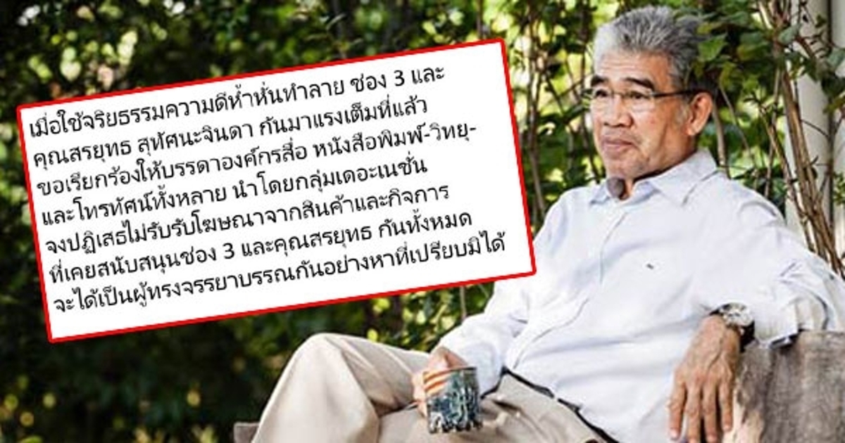ดร.สมเกียรติ อ่อนวิมล โพสต์ถึงบรรดาสื่อที่กดดัน-ไล่ล่า อย่ารับโฆษณาที่เคยลงกับ สรยุทธ-ช่อง 3 จะได้เป็นผู้ทรงจรรยาบรรณอย่างหาที่เปรียบไม่ได้