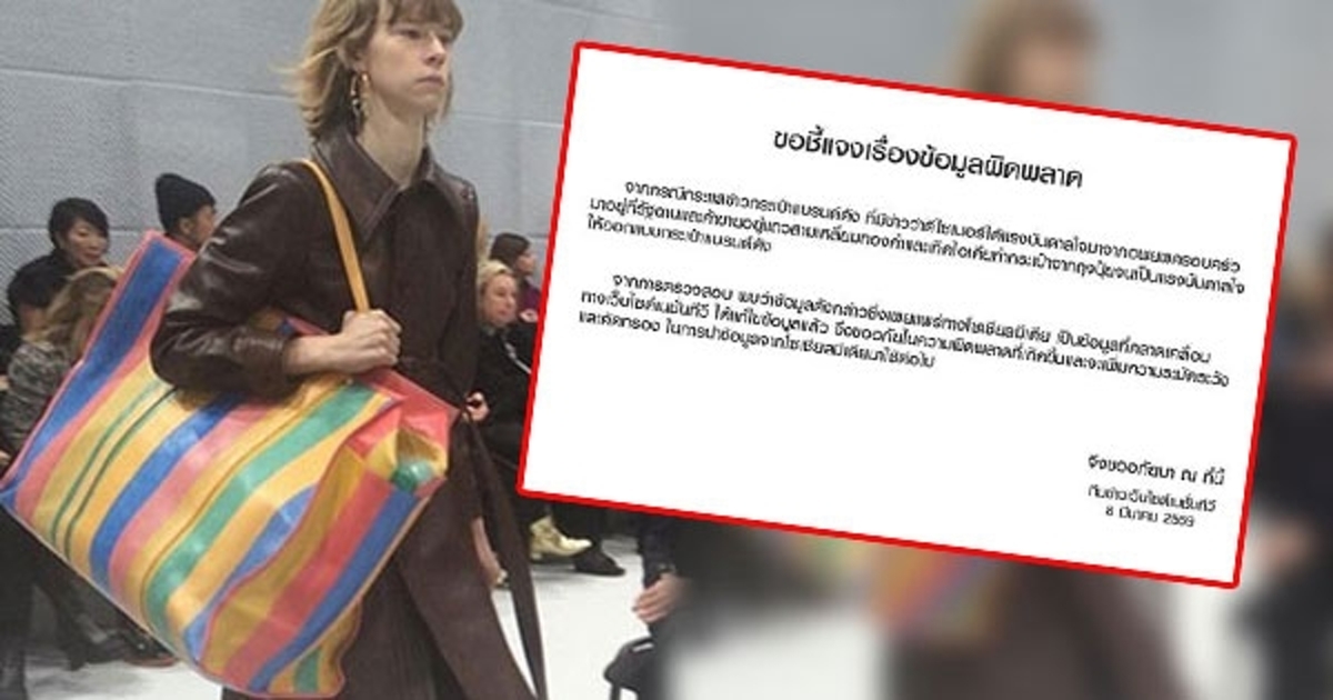 เนชั่นทีวี แถลงขอโทษนำเสนอข้อมูลผิดพลาดเรื่องกระเป๋าแบรนด์หรู Balenciaga ได้แรงบันดาลใจจากถุงปุ๋ย ชาวเน็ตชี้ดีที่ยอมรับผิด เตือนเช็กข้อมูลก่อนนำเสนอ
