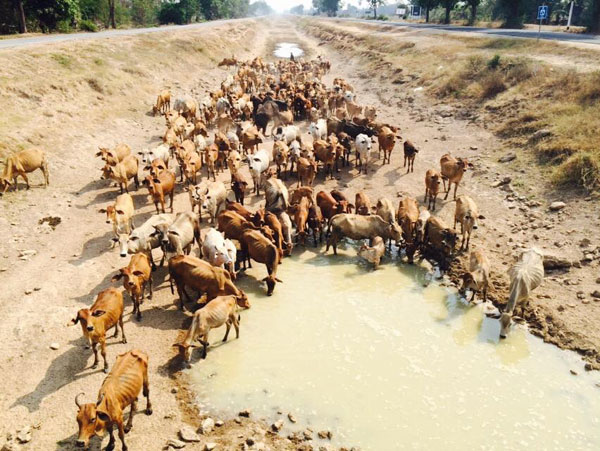 ทั้งนี้ มีรายงานเพิ่มเติมว่า น้ำในคลองดังกล่าว ไม่เหลือพอที่คนสามารถใช้ได้เป็นระยะทางหลายกิโลเมตร วัวของชาวบ้านต้องลงไปพึ่งน้ำก้นคลองที่เหลืออยู่เป็นหย่อม ๆ เพื่อแก้กระหายและประทังชีวิต ท่ามกลางแสงแดดที่ร้อนระอุ ขณะที่คนเลี้ยงเองก็ไม่มีแหล่งน้ำอื่นให้วัวกิน อาหารก็น้อยลง เนื่องจากปัญหาภัยแล้งในครั้งนี้นั่นเอง