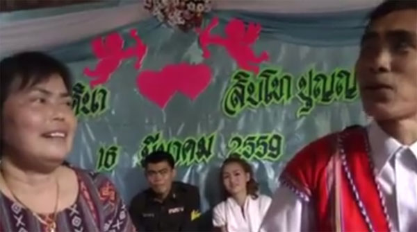ทั้งนี้ การแต่งงานดังกล่าวเป็นการแต่งงานตามประเพณีชาวกะเหรี่ยง เจ้าบ่าวคือ ส.ท. ปุญญพัฒน์ ศิริวัฒนพิเชษฐ์ หนุ่มทหารช่าง กองพันทหารช่างที่ 9 ค่ายสุรสีห์ จ.กาญจนบุรี วัย 24 ปี เจ้าสาวคือ ข้าราชการครูในพื้นที่สังขละบุรี