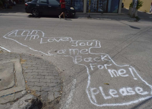 เมื่อวันที่ 20 มีนาคม 2559 ที่บริเวณพื้นถนนปากทางเข้าซอย 5 ถนนเทพประสิทธิ์ ย่านพัทยาใต้ หมู่ 12 ต.หนองปรือ อ.บางละมุง จ.ชลบุรี พบมีข้อความภาษาอังกฤษขนาดใหญ่สีขาวที่พ่นด้วยสีสเปรย์กระป๋องระบุว่า "Ann Im love you! Come back for me! Please." ซึ่งแปลเป็นภาษาไทยใจความว่า "แอน ผมรักคุณ ได้โปรดกลับมาหาผม" ส่วนบริเวณหน้าอาคารพาณิชย์สูง 2 ชั้น ที่อยู่ฝั่งตรงข้ามกับซอย 5 ถนนเทพประสิทธิ์ พบข้อความที่พ่นด้วยสีสเปรย์เช่นกันเขียนว่า "Ann" และมีลูกศรชี้ไปทางข้อความแรก ทำให้เกิดความสกปรกไม่น่ามอง โดยผู้ที่ใช้รถใช้ถนนช่วงบริเวณดังกล่าวต่างก็พากันมึนงงไปตาม ๆ กัน