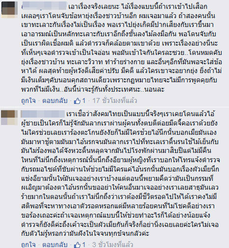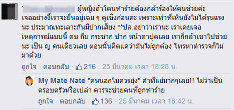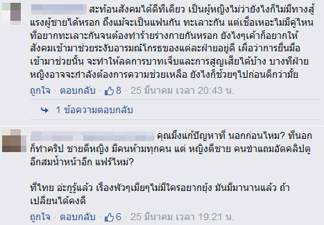 ทั้งนี้ หนุ่มเจ้าของคลิปยังได้ทิ้งข้อคิดเตือนใจไว้ในช่วงท้ายด้วยว่า การทะเลาะเบาะแว้งกันเป็นเรื่องธรรมดาของชีวิต แต่การใช้กำลังทำร้ายร่างกาย ไม่ว่าจะใช้กับเด็ก ผู้หญิง หรือผู้ชาย เป็นเรื่องที่ไม่สมควร ผู้ที่ใช้กำลังในการแก้ปัญหาคือขยะของสังคม ขอให้ทุกคนร่วมกันดูแล และช่วยกันหยุดสิ่งเหล่านี้ด้วย