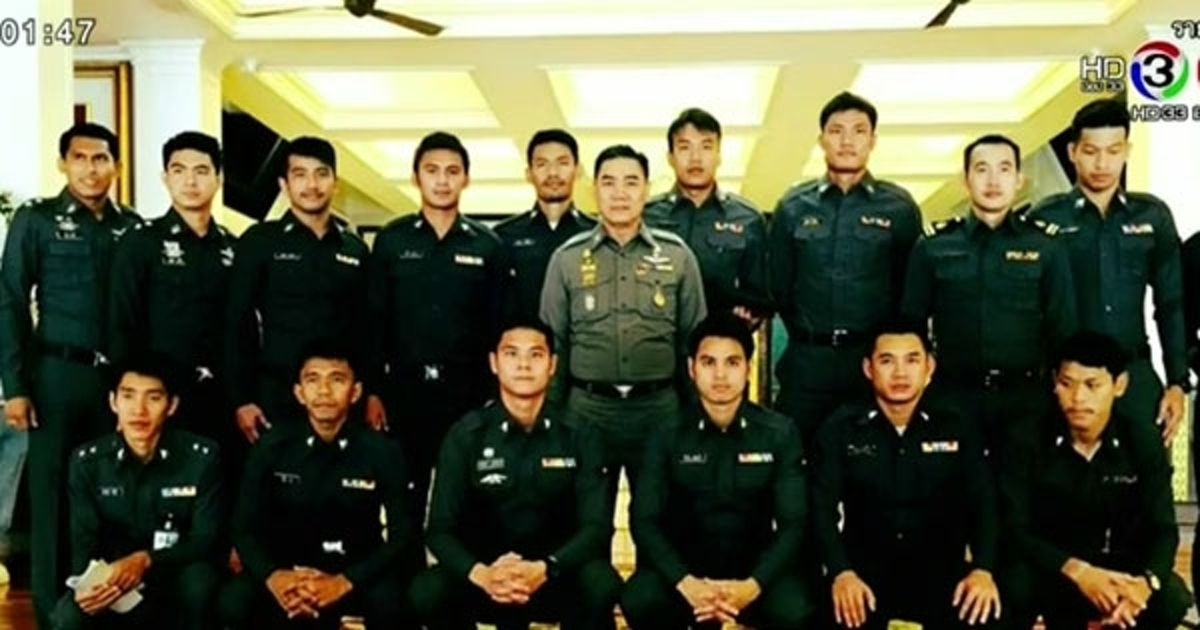 มาดนี้หล่อละลาย ! เหล่านักเตะทีมชาติไทย สวมชุดตำรวจเต็มยศ เข้ารายงานตัวกับ ผบ.ตร. โดนสั่งวิดพื้น ฐานแต่งตัวไม่เรียบร้อย