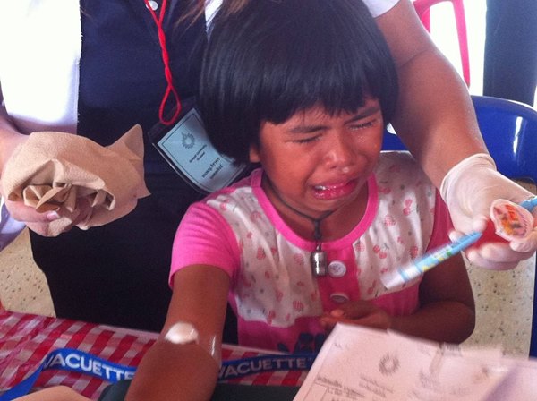 แต่ล่าสุด วันที่ 31 มีนาคม 2559 เฟซบุ๊กเพจ มิตรสหายท่านหนึ่ง ได้โพสต์ภาพที่เผยให้เห็นเจ้าหน้าที่จากมหาวิทยาลัยรังสิต กำลังทำการเจาะเลือดเด็กน้อยชาวบ้านที่อาศัยอยู่บริเวณรอบเหมืองทองคำชาตรี จ.พิจิตร โดยระบุข้อความว่า..