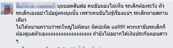 มีอุบัติเหตุอุทาหรณ์เกี่ยวกับการใช้รถใช้ถนนให้เห็นกันอยู่บ่อย ๆ อย่างล่าสุด (7 เมษายน 2559) ในโลกออนไลน์มีการแชร์คลิปวิดีโอชวนหวาดเสียวมาจากผู้ใช้เฟซบุ๊ก Jang Muay-Lek ที่ได้โพสต์คลิปวิดีโอจากกล้องหน้ารถยนต์เผยให้เห็นอุบัติเหตุระหว่างรถเก๋งกับรถบรรทุกสิบล้อ โดยฝ่ายรถบรรทุกสิบล้อได้เปิดไฟขอทางเพื่อจะเข้าเลนซ้าย ส่วนรถเก๋งก็จะเข้าเลนขวา แต่เนื่องจากเป็นมุมอับสายตายทำให้รถสิบล้อชนกับรถเก๋งและลากรถเก๋งไประยะหนึ่ง ก่อนที่รถยนต์คันมีกล้องจะบีบแตรยาวจนทำให้รถสิบล้อรู้ตัวและหยุดรถลงมาดู จากนั้นจึงมีเจ้าหน้าที่ตำรวจวิ่งเข้ามาดูเหตุการณ์และให้ทั้งสองฝ่ายไกล่เกลี่ยกัน