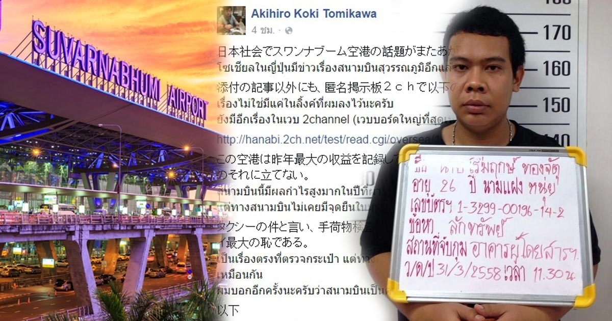 มีเรื่องให้คนไทยต้องหน้าร้อนด้วยความอับอายกันอีกแล้ว ที่ล่าสุด (11 เมษายน 2559) โลกออนไลน์มีการแชร์ข้อความของ โกกิ อากิ หนุ่มญี่ปุ่นหัวใจไทย ที่ได้โพสต์ข้อความผ่านเฟซบุ๊ก Akihiro Koki Tomikawa เปิดเผยว่า โซเชียลในญี่ปุ่นมีการพูดถึงข่าวเรื่องสนามบินสุวรรณภูมิอีกแล้ว ในเรื่องที่ทางสนามบินมีผลกำไรสูงมากแต่ไม่ค่อยใส่ใจด้านการบริการ ทั้งในเรื่องจุดการตรวจกระเป๋าและเรื่องแท็กซี่สุวรรณภูมิ ซึ่งนั่นคือความน่าอับอายของประเทศไทยในสายตาชาวต่างชาติ