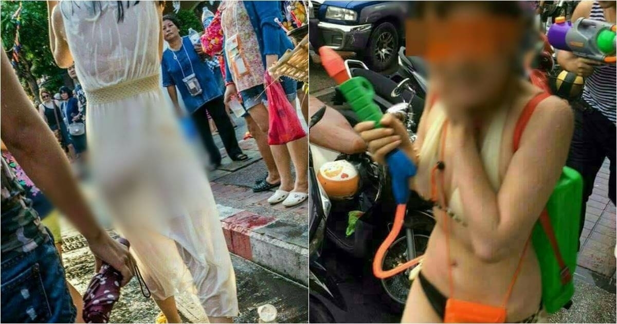 แชร์กันเพียบ ภาพนักท่องเที่ยวจีนแต่งชุดวาบหวิว สวมกระโปรงสีขาวบางเฉียบเล่นน้ำสงกรานต์ที่เชียงใหม่ ขณะอีกคนมาในชุดบิกินี่ วอนประชาสัมพันธ์นักท่องเที่ยวให้แต่งกายให้เรียบร้อย