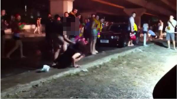 เวลาต่อมามีผู้อยู่ในเหตุการณ์คนหนึ่่งทนดูไม่ไหวได้ลุกขึ้นไปเอาปืนฉีดน้ำฟาดหน้าชายคนดังกล่าว และเกือบจะมีเรื่องราวทะเลาะวิวาท ชายคนดังกล่าวได้ระบุว่า ตนพยายามพาแฟนกลับบ้าน คู่ของตนเป็นแบบนี้มาแต่ไหนแต่ไรแล้ว และขอโทษคนที่อยู่ในเหตุการณ์ด้วย