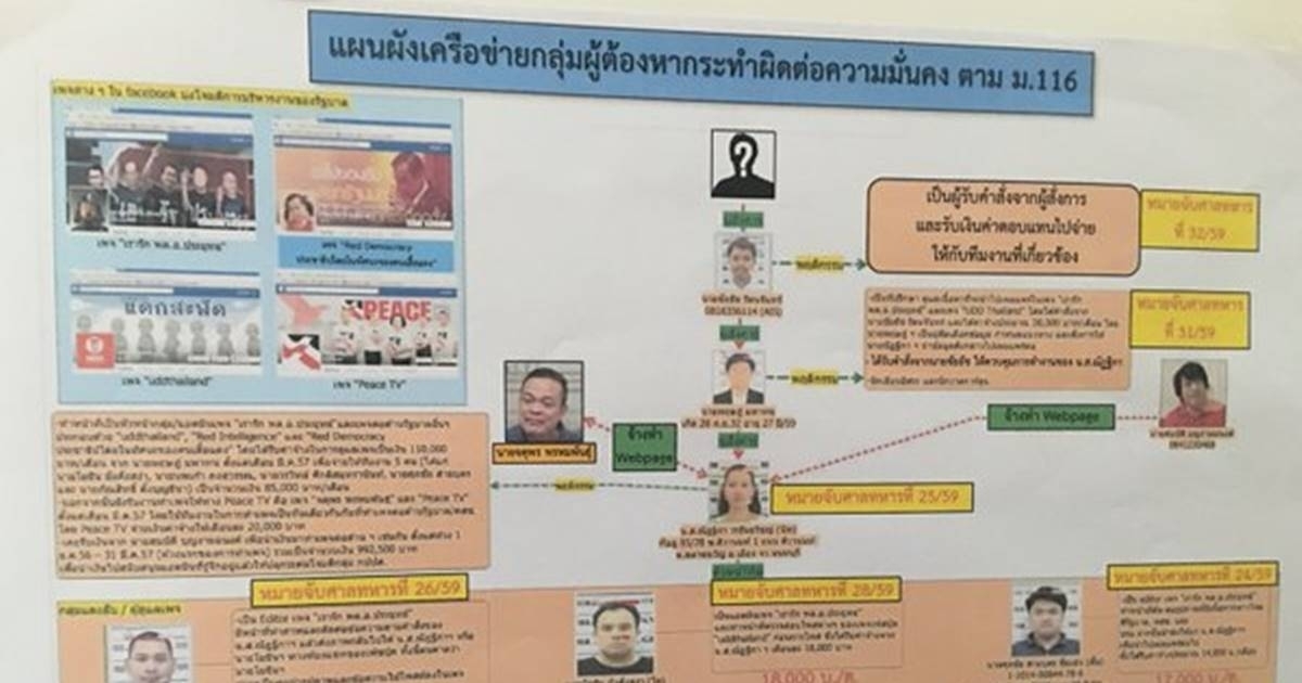 วันที่ 28 เมษายน 2559 พล.ต.อ. ศรีวราห์ รังสิพราหมณกุล รองผู้บัญชาการตำรวจแห่งชาติ ได้เดินทางมาสำรวจคดีที่ทหารได้แจ้งความดำเนินคดีกับกลุ่มแอดมินเพจเฟซบุ๊กที่มีการโพสต์ข้อความวิพากษ์วิจารณ์รัฐธรรมนูญและการทำประชมติ โดยในระหว่างการแถลงข่าวนั้น เจ้าหน้าที่ตำรวจได้มีการเผยแผนผังความเชื่อมโยงของกลุ่มคนดังกล่าวในความผิดตามประมวลกฎหมายอาญา มาตรา 116 และ พ.ร.บ.คอมพิวเตอร์ พ.ศ. 2550 หลังจากจับกุมทั้ง 8 คน