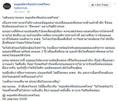 "เพจหยุดดัดจริตประเทศไทย" กลับมาใช้งานปกติอีกครั้ง หลังจากปิดเพจชั่วคราว รับผิดให้ข้อมูลมั่ว ร่าง พ.ร.บ.คอมพิวเตอร์ฉบับใหม่