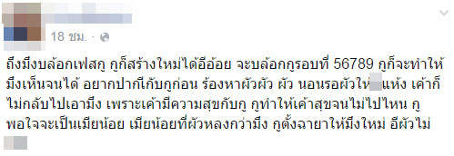วิจารณ์เละ หญิงโพสต์ภาพหลับนอนกับผู้ชาย เย้ยเมียหลวง พร้อมตั้งฉายาสุดหยาบ ขณะที่จากการตรวจสอบ เฟซบุ๊กดังกล่าวเปิดได้ไม่นาน