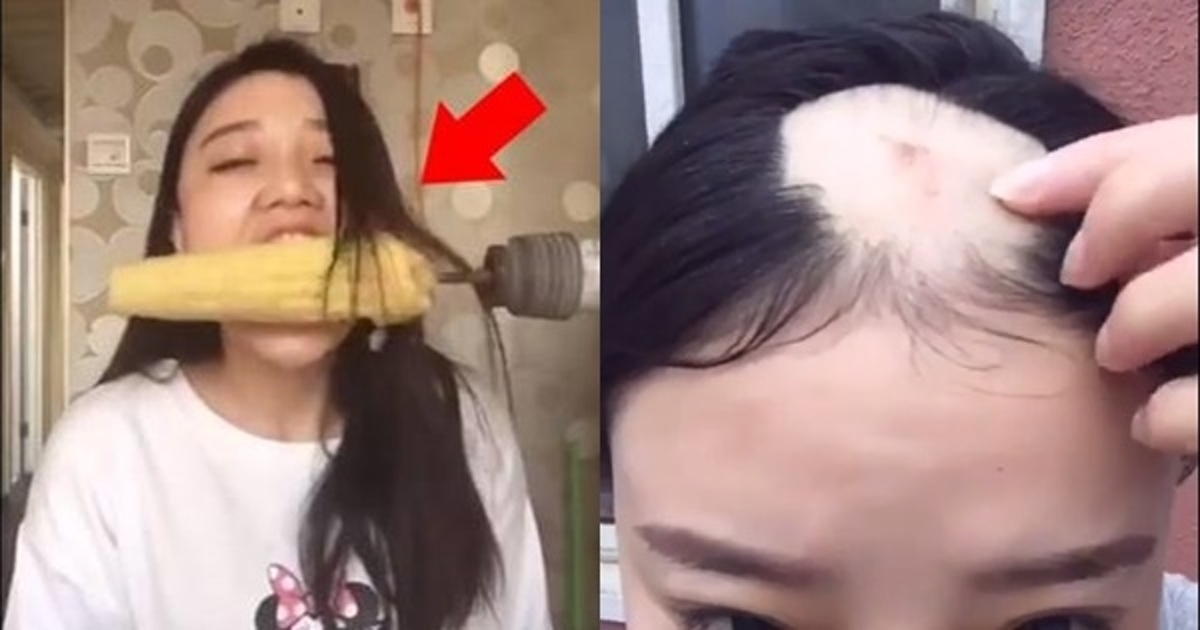 เป็นคลิปสุดฮือฮาที่ทำเอาขำปนสงสารกันเลยทีเดียว เมื่อสาวหมวยรายหนึ่งตั้งใจจะทำคลิปเลียนแบบการกินข้าวโพดด้วยสว่าน แต่ดันพลาดถูกสว่านทึ้งผมออกไปทั้งยวงจนศีรษะโล้นแหว่งเป็นหย่อมอยู่กลางกระหม่อมเสียอย่างนั้น [อ่านข่าว : ขำปนสงสาร ! สาวลองกินข้าวโพดแบบคลิปดัง ฟันไม่หลุด แต่ผมร่วงเป็นแถบ]
